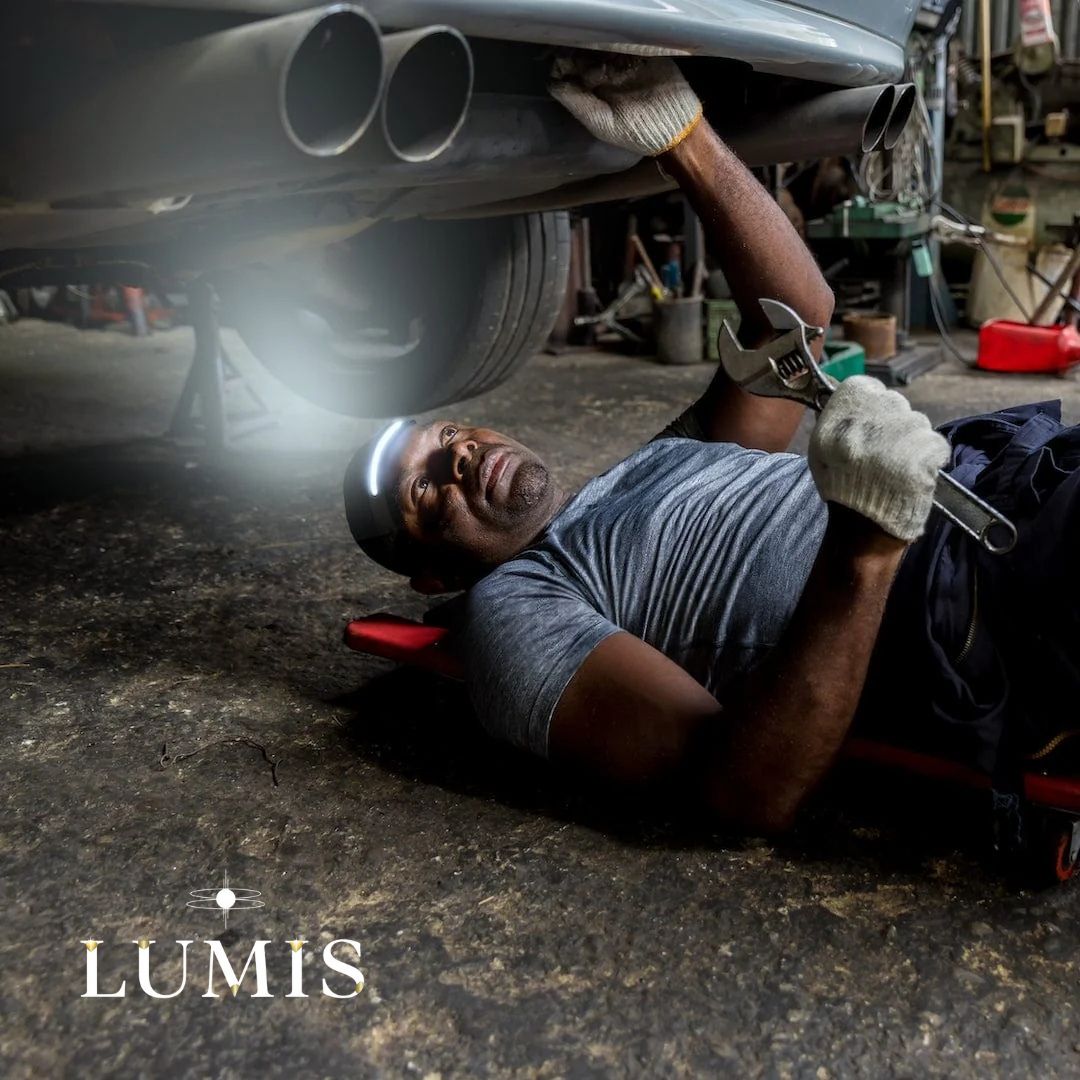 Con la linterna frontal Lumis, solo necesitas pasar la mano por delante del sensor para prenderla o apagarla. Así puedes mantener las dos manos totalmente libres para trabajar con la llave, ajustar una correa o manejar tus herramientas sin estorbo.